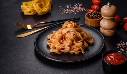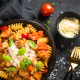 salmon pasta with bread
