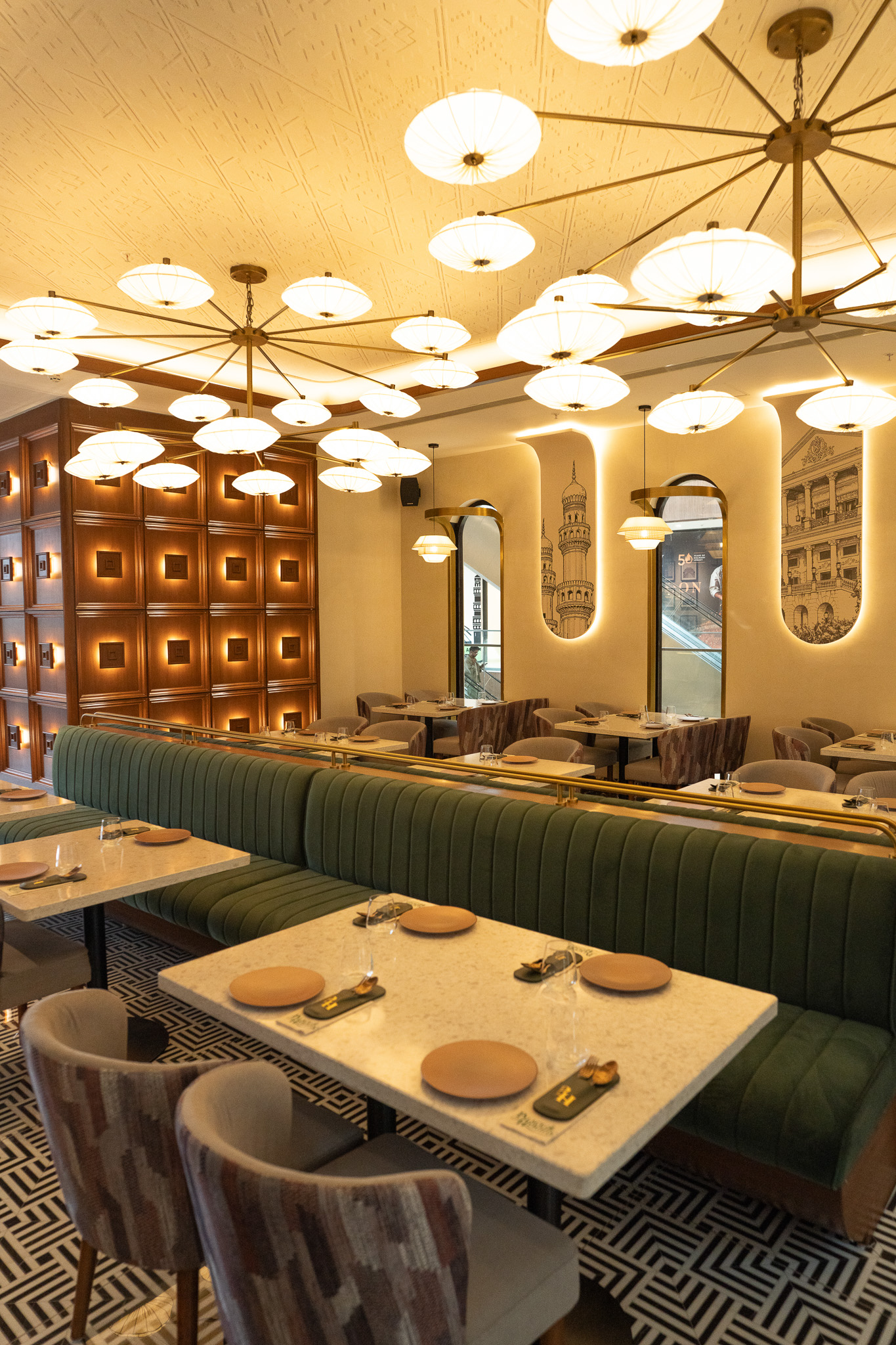 Indoor Dining Elegant, air-conditioned interiors with warm lighting and spacious seating